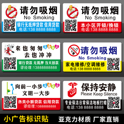 电梯小广告牌子定制亚克力贷款开锁保洁家电维修电梯小广告墙贴创意洗手间二维码打广告宣传请勿吸烟温馨提示